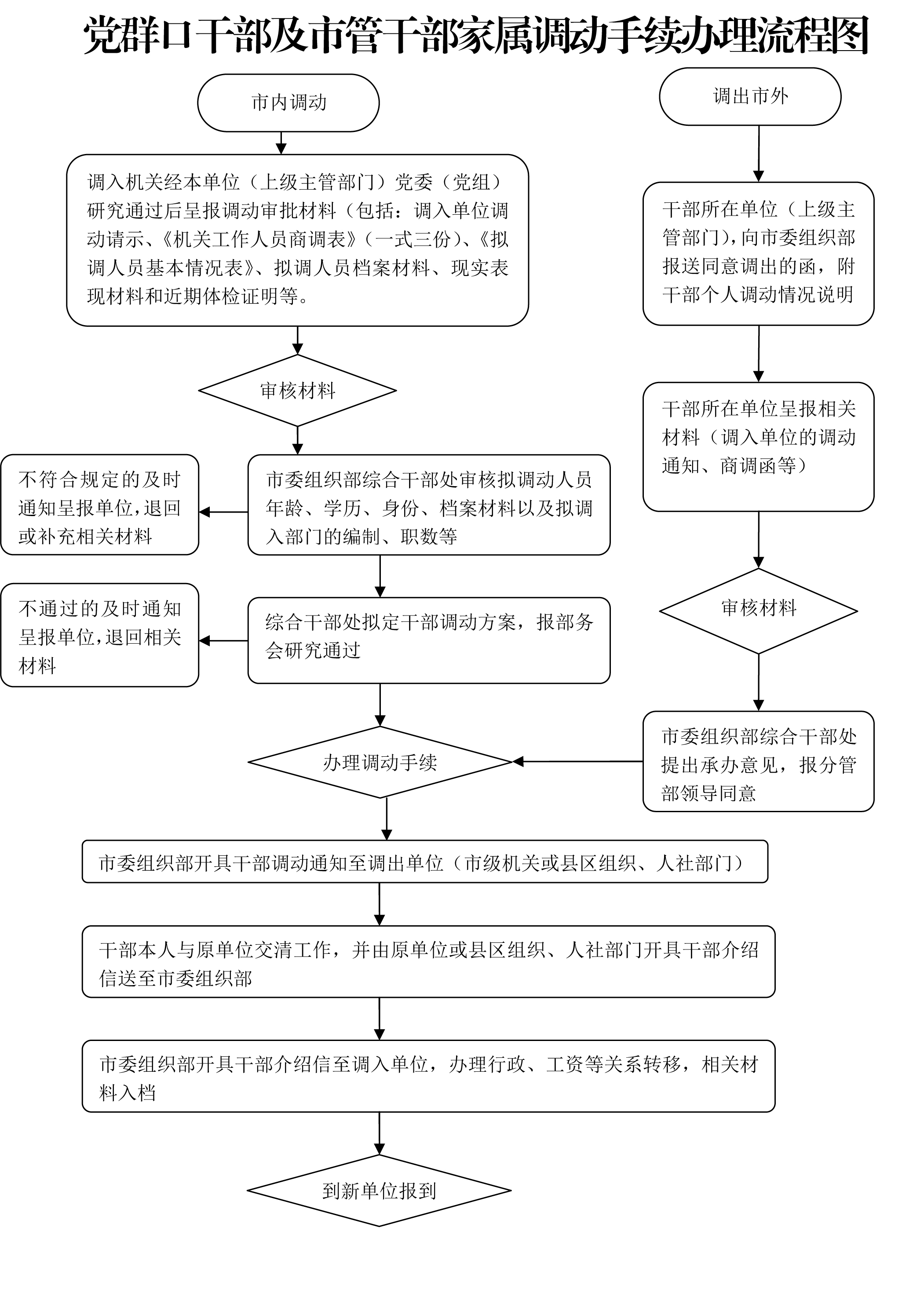 黨群口干部及市管干部家屬調(diào)動(dòng)手續(xù)辦理流程圖